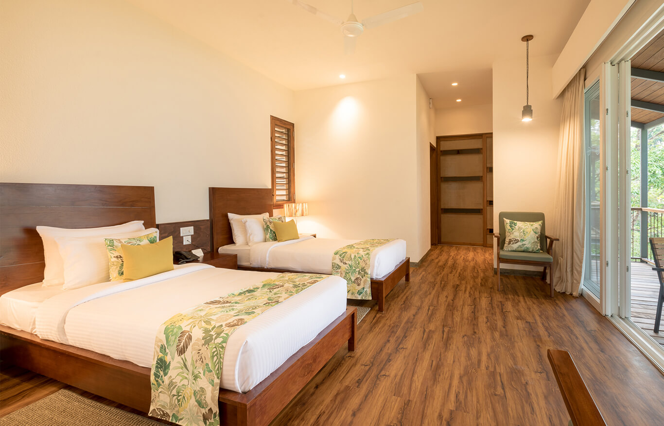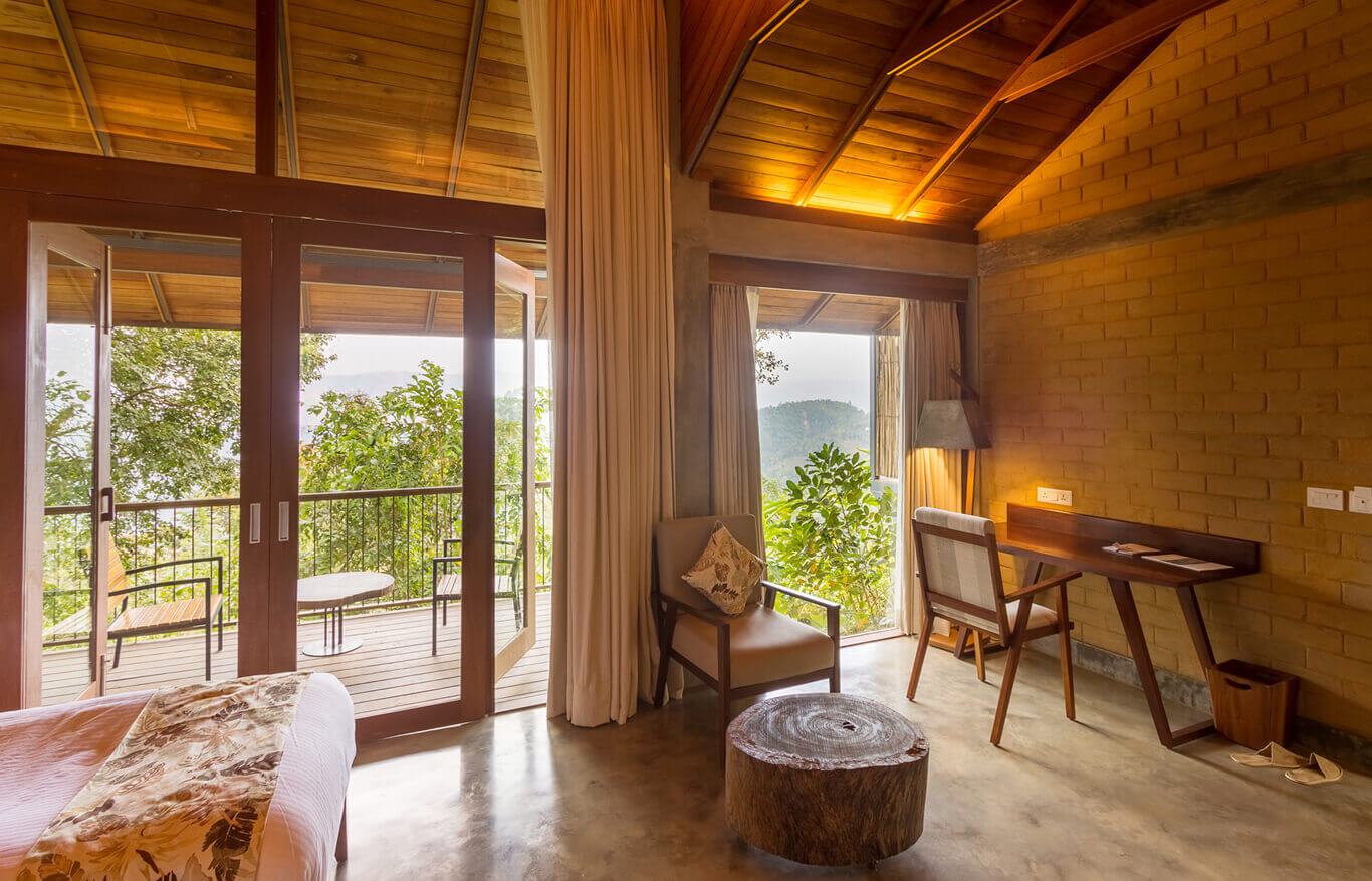 Experience tranquility in the 19 cottages, each designed in three distinct styles. Inviting the serenity and lush greenery of Panchalimedu into the living space, these cottages provide a sanctuary in nature's comforting embrace. Scenic balconies complement the spacious bedrooms, creating an ideal retreat within the picturesque surroundings.