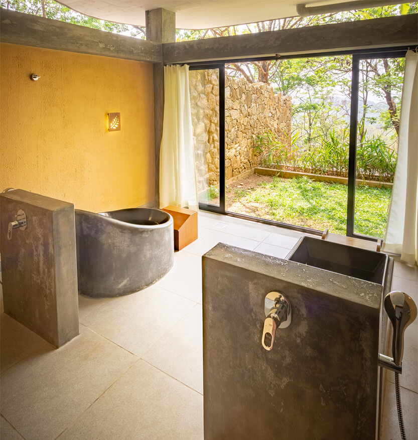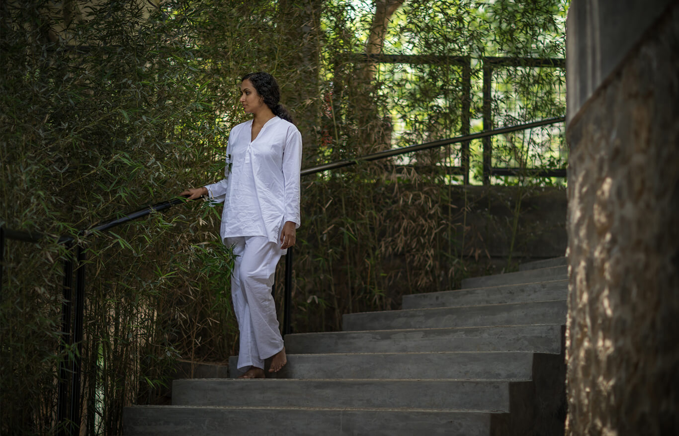 As the golden hues of sunrise illuminate the landscape, the pool area becomes a heavenly spot to welcome the mornings. Offering a panoramic view of the hills, this common area with outdoor seating, along with the adjacent restaurant, becomes a gathering space for shared therapy sessions and enlightening discussions. Surrounded by verdant hillocks, Prakriti Shakti boasts numerous scenic spots where one can seclude from the world and immerse in the beauty of nature.