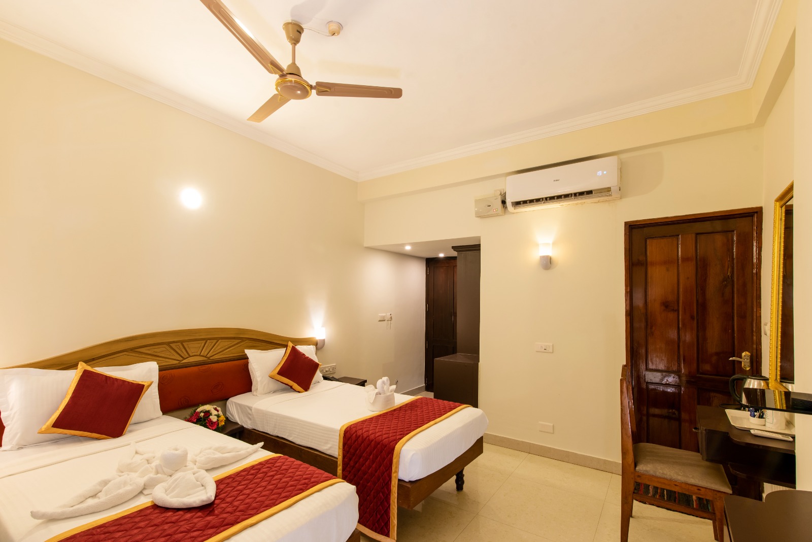 FacilitiesSea View Rooms are finely crafted rooms that exquisitely capture the centuries-old heritage of Kerala. The resort boasts 40 rooms across three distinct categories: 22 Sea View Rooms offer a breathtaking view of the beach.