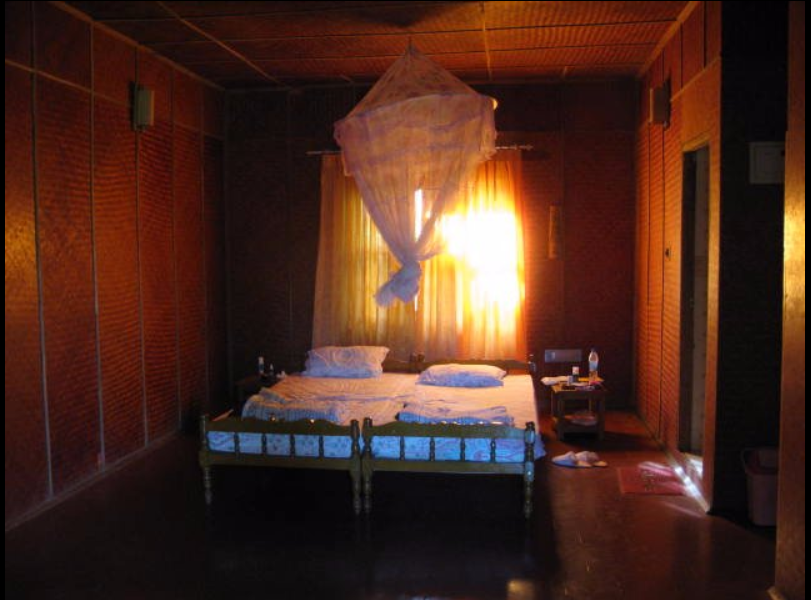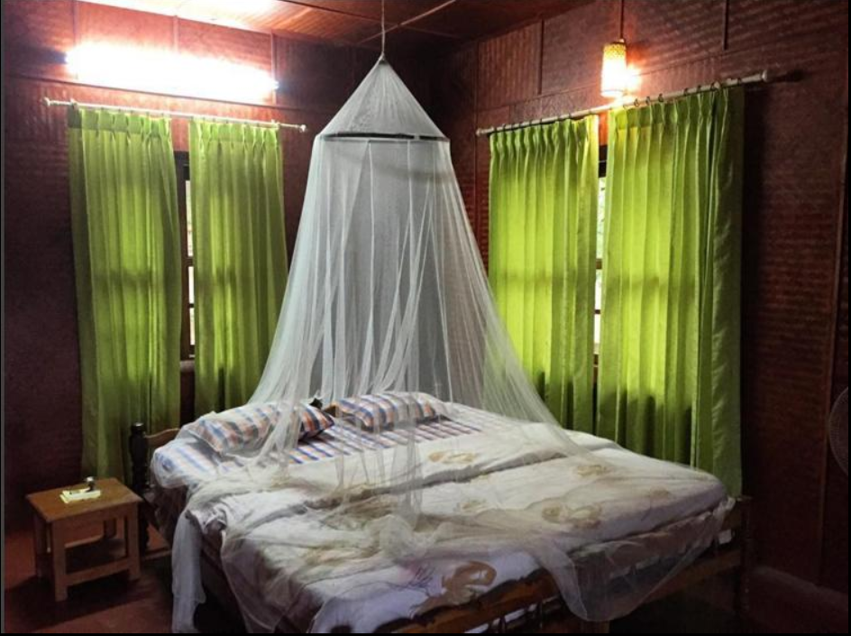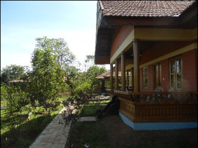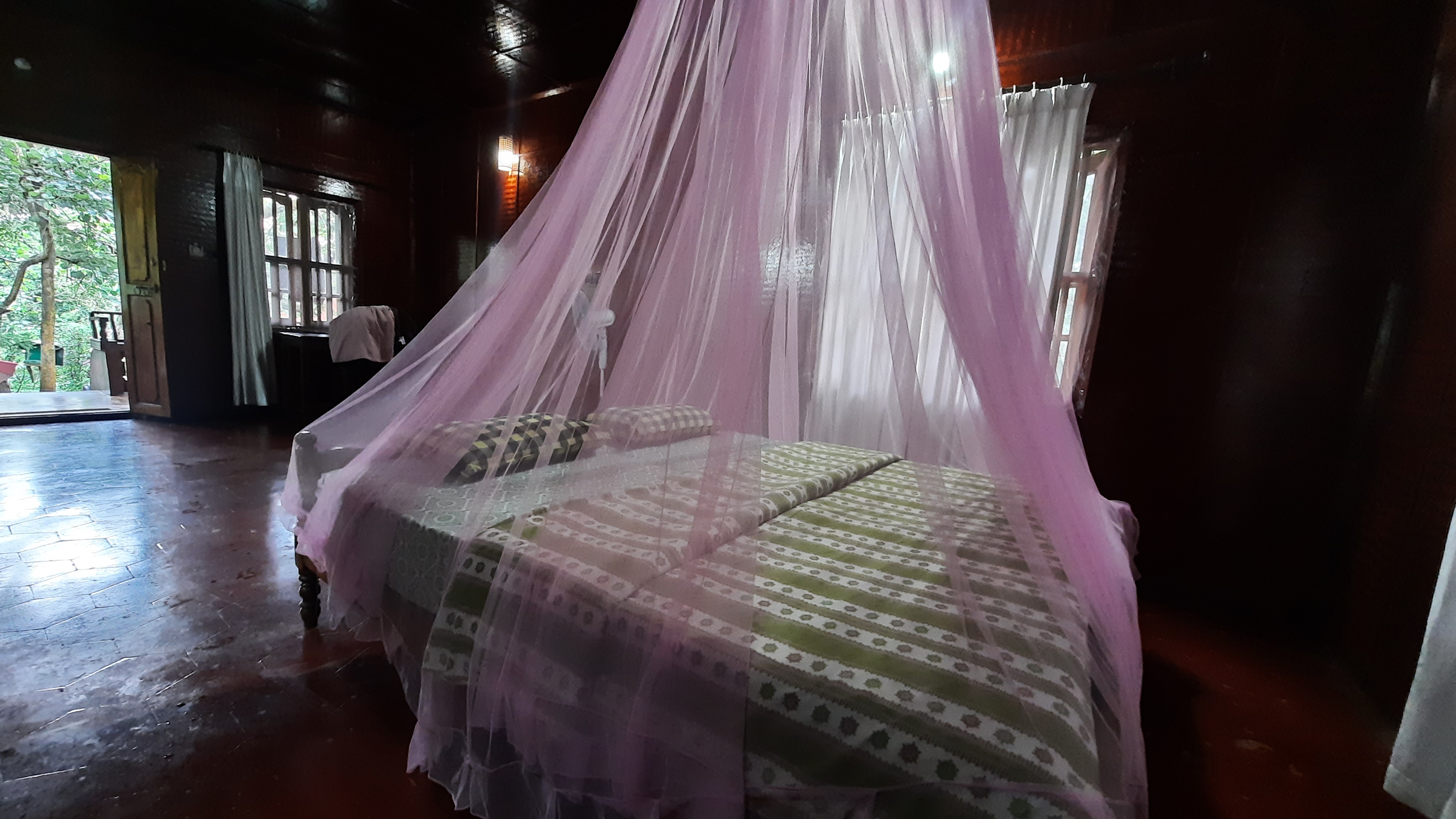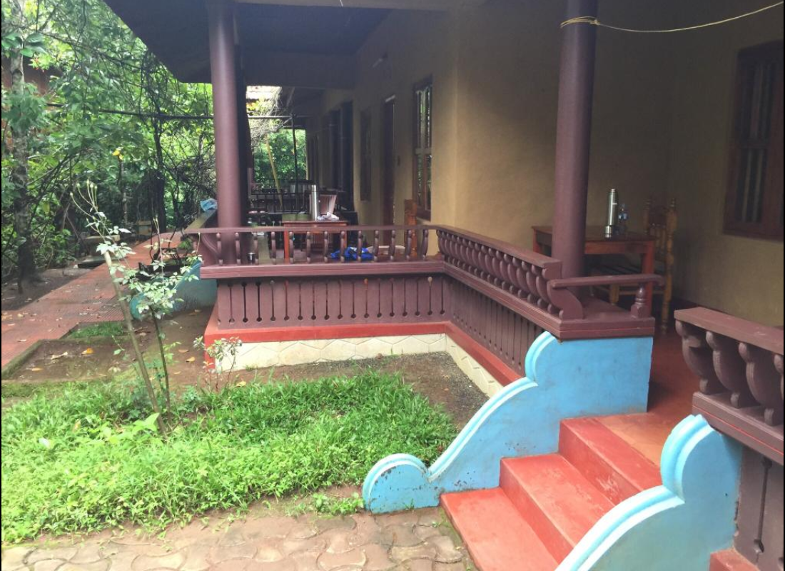 Located behind the front cottages. From the balconies you can’t see the river and forest – but from the bedroom windows you are open to lot of greenery and jungle behind retreat campus.