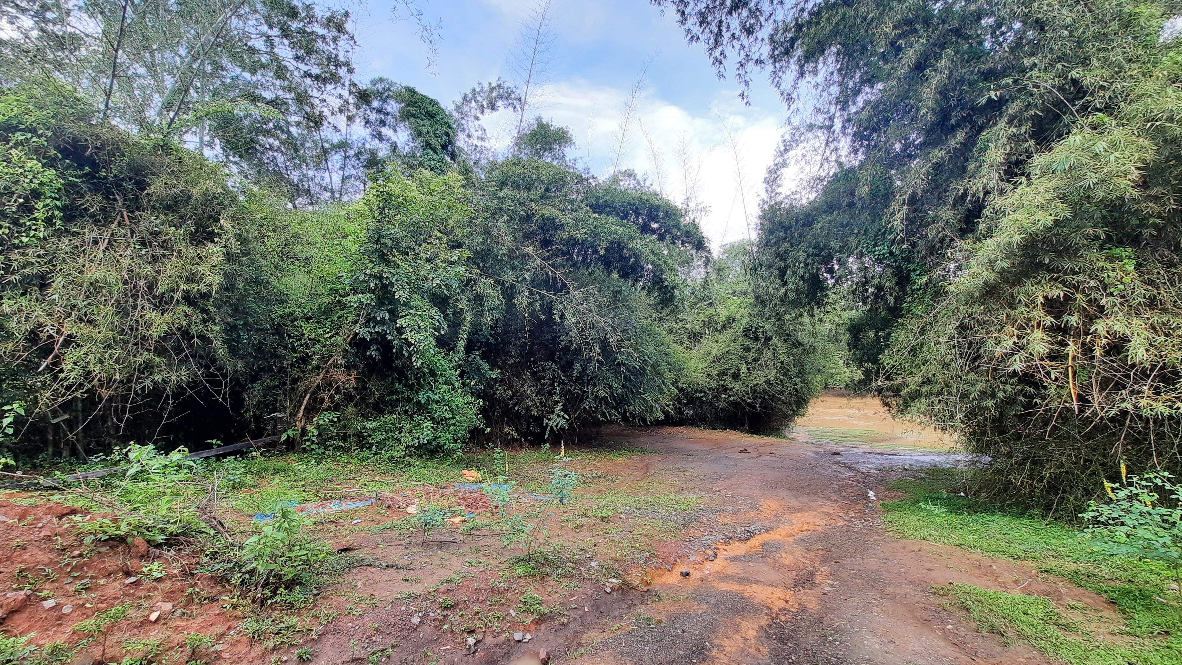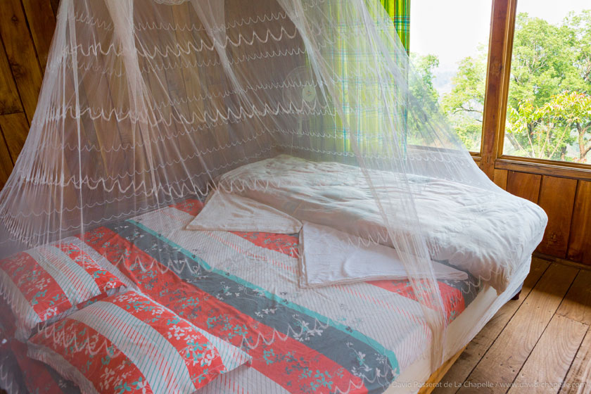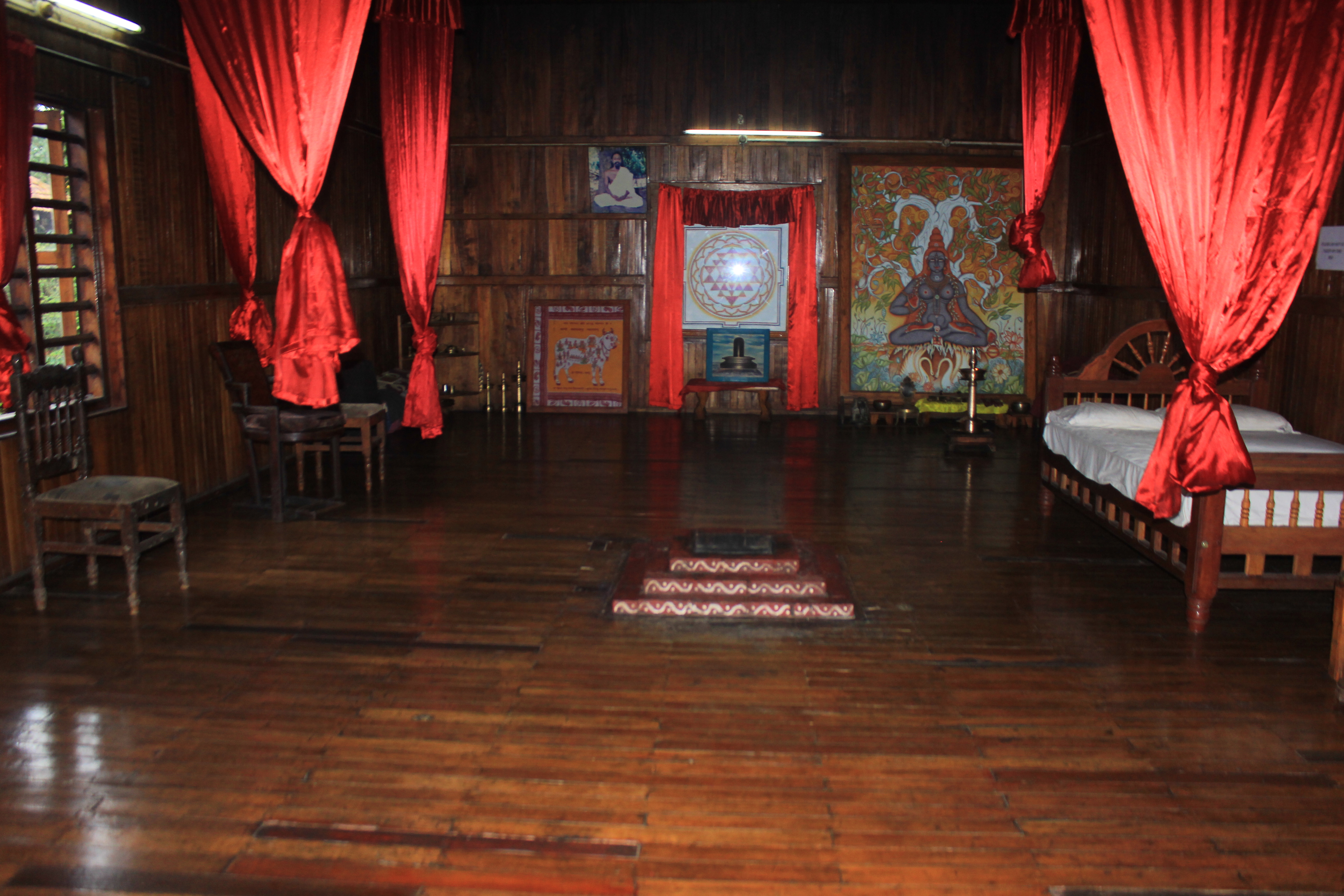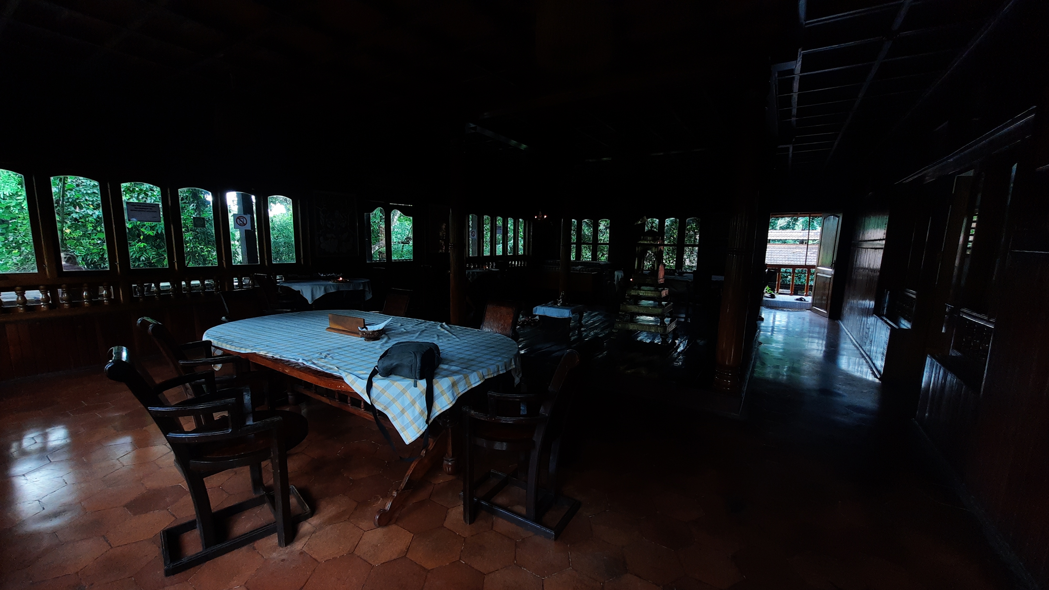 Located behind the front cottages. From the balconies you can’t see the river and forest – but from the bedroom windows you are open to lot of greenery and jungle behind retreat campus.