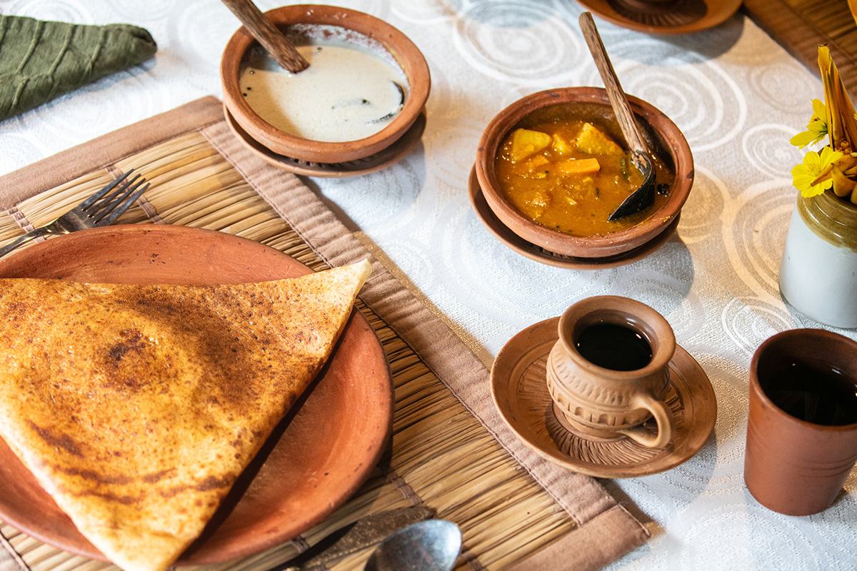 The retreat features an authentic Ayurvedic restaurant where meals are thoughtfully prepared to suit each guest’s dosha, offering a harmonious combination of flavour, nutrition, and therapeutic value. This culinary experience forms an essential part of the wellness journey, promoting preventive care through a balanced Ayurvedic diet.