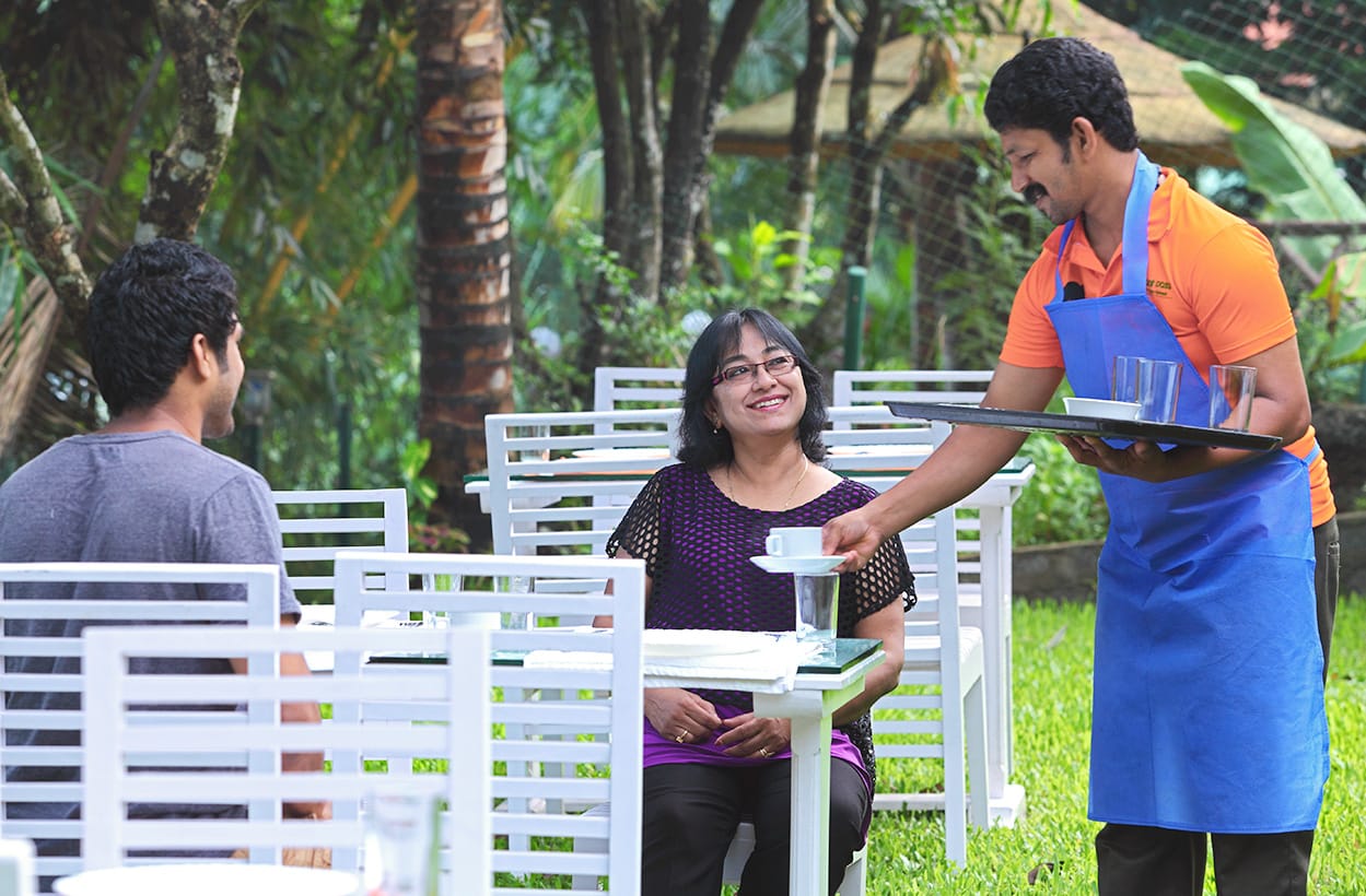 The service was great. The staff tried their best to keep us happy. The restaurant is available, but not operational. Food was served from some outside hotel. It was good and not at all expensive. Breakfast was complimentary and tasted very nice. Ayurveda, Spa facilities are also available here. We didn't avail any, as we were running out of time. The staff was very helpful. As the A/c was not functioning, he gave a discount on room rents also.