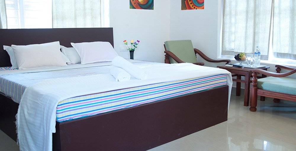 170 Sqft bedroom with king bed 10 inch, pocket spring mattress; one of its kind in varkala.