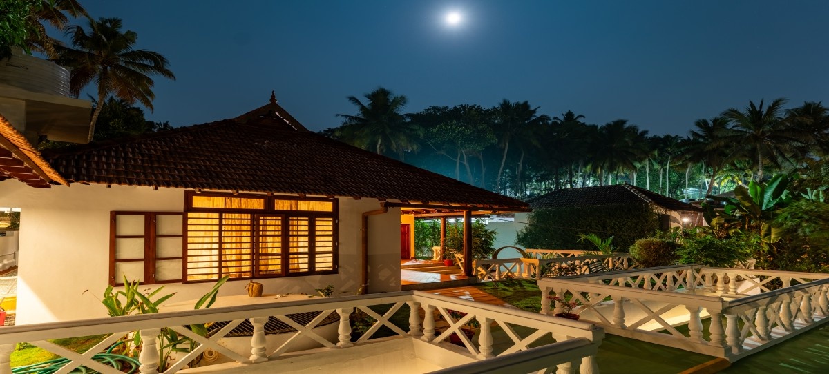 Set in an ancient fishing village, Nikki’s Nest offers panoramic views of the Arabian Sea, where local fishermen set sail in traditional catamarans guided by the stars. The resort’s design blends seamlessly with its natural surroundings, featuring open breezy corridors, lush lawns, and palm-fringed cottages cascading down a hillock to the shoreline. Each cottage, complete with essential comforts, features a private verandah for a tranquil coastal retreat.