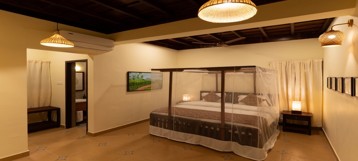 Each chalet features a private sit-out, ideal for mindful moments such as reading, meditation, or simply absorbing the calming rhythms of nature. The attached baths are designed for convenience, while secure lockers ensure both connectivity and peace of mind. Mosquito nets are available on request, promoting an undisturbed night’s rest in harmony with nature.