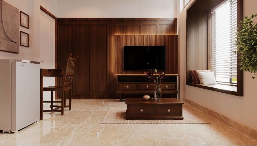 Each room is thoughtfully arranged to ensure functional comfort, allowing guests to unwind between treatments without distraction. The ambience remains simple and soothing, aligning seamlessly with the Ayurvedic philosophy of balance and moderation, while offering essential conveniences for a restful stay.