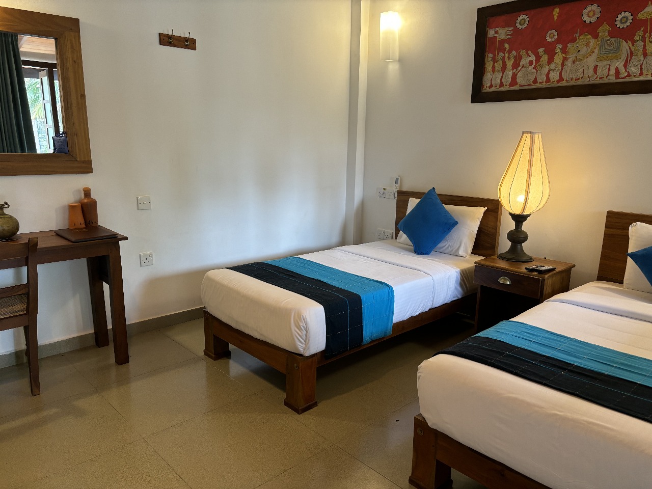 Immerse yourself in comfort and holistic wellness in the Deluxe Double Room at Roman Life Resort. Perfect for two guests, this serene space blends Ayurvedic charm with modern elegance. With thoughtfully chosen décor and a cozy double bed, it offers a peaceful retreat designed to restore your energy and promote relaxation.