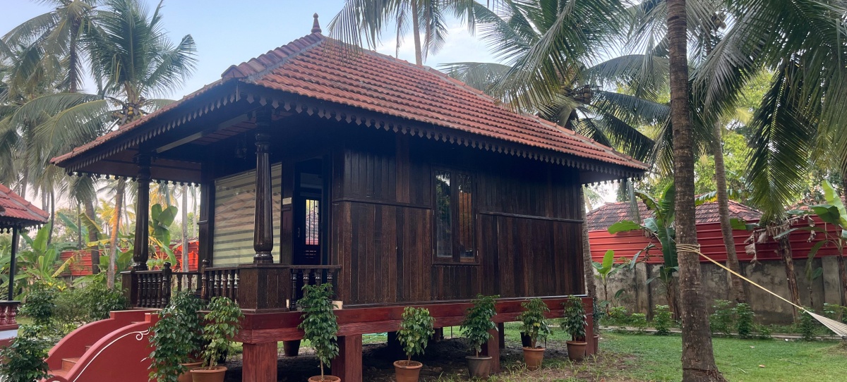 FacilitiesAbhaya Cottage at Sree Chithra Ayur Yoga Theeram offers an elegant blend of comfort and charm, designed to provide guests with a truly restful stay. The cottage is fully air-conditioned and creating a plush and inviting ambiance. A private balcony opens out to serene surroundings, offering the perfect space to unwind in peace. Furnished with carefully chosen natural materials, the interiors radiate warmth and authenticity, while an exposed burnt brick wall adds a distinctive rustic touch. With its harmonious balance of modern comforts and natural elegance, the Abhaya Cottage ensures a memorable retreat experience.
