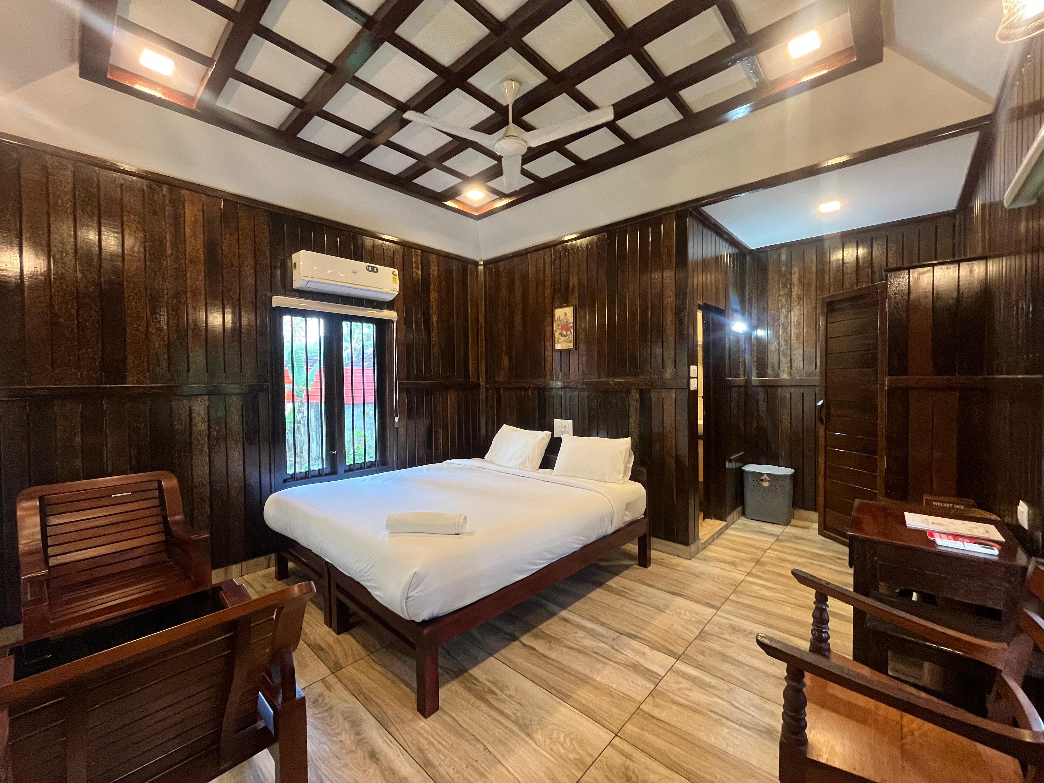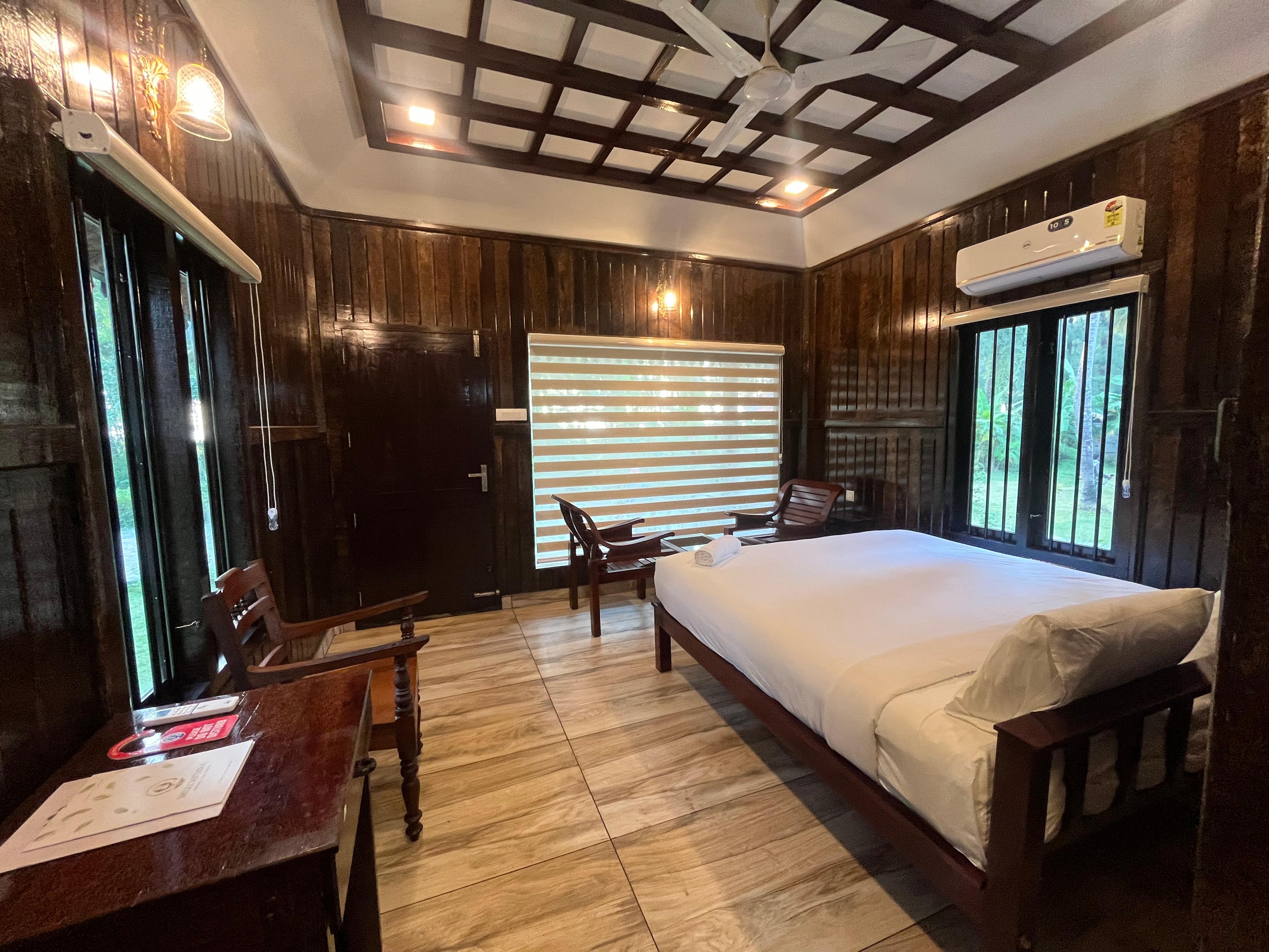The Wooden Cottage is well suited for guests who value a traditional, earthy living experience during their stay. Its calm ambience and close connection to the natural surroundings create a supportive setting for Ayurvedic treatments, yoga sessions, and quiet reflection at Sree Chithra Ayur Yoga Theeram.