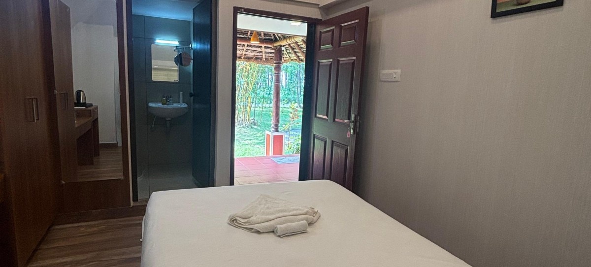 FacilitiesVasudevam Standard Room at Sree Chithra Ayur Yoga Theeram offers a harmonious blend of comfort and simplicity, creating a serene retreat for guests. The room is fully air-conditioned and elegantly styled that welcomes natural light and refreshing views, enhancing the overall sense of tranquillity. Furnished with carefully chosen natural materials, the interiors radiate warmth and authenticity, bringing a soothing, nature-inspired feel. With its plush yet calming ambience, the Vasudevam Standard Room provides an ideal environment for rest and rejuvenation.