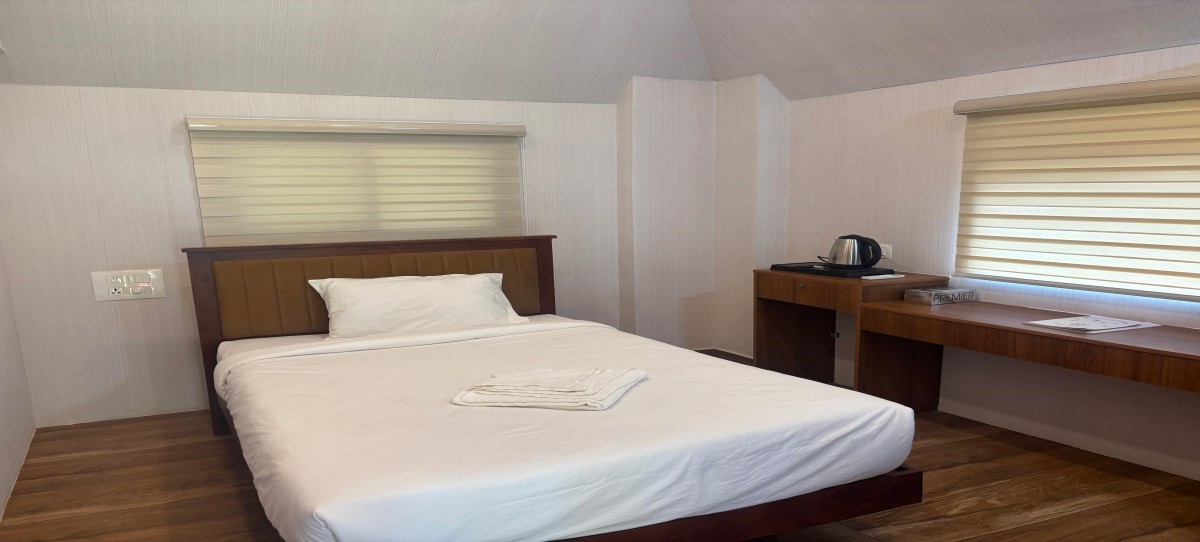 FacilitiesVasudevam Premium Room at Sree Chithra Ayur Yoga Theeram offers an elevated stay experience that blends elegance with natural charm. The room is fully air-conditioned and thoughtfully styled, featuring a private balcony with refreshing views and soothing breezes. Interiors are adorned with handpicked natural materials, creating a warm, earthy ambience that reflects both comfort and authenticity. With its plush design and serene atmosphere, the Vasudevam Premium Room serves as a perfect sanctuary for relaxation and rejuvenation.