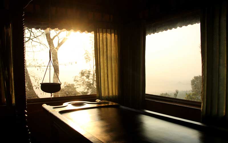 Located Underneath of Wooden cottage and close to the restaurant and Yoga Hall, Made partly with wood and stone, and has comparatively sorter view of rising sun and moon. You can reach quickly to the program halls. Ideal for senior Citizen and Physic